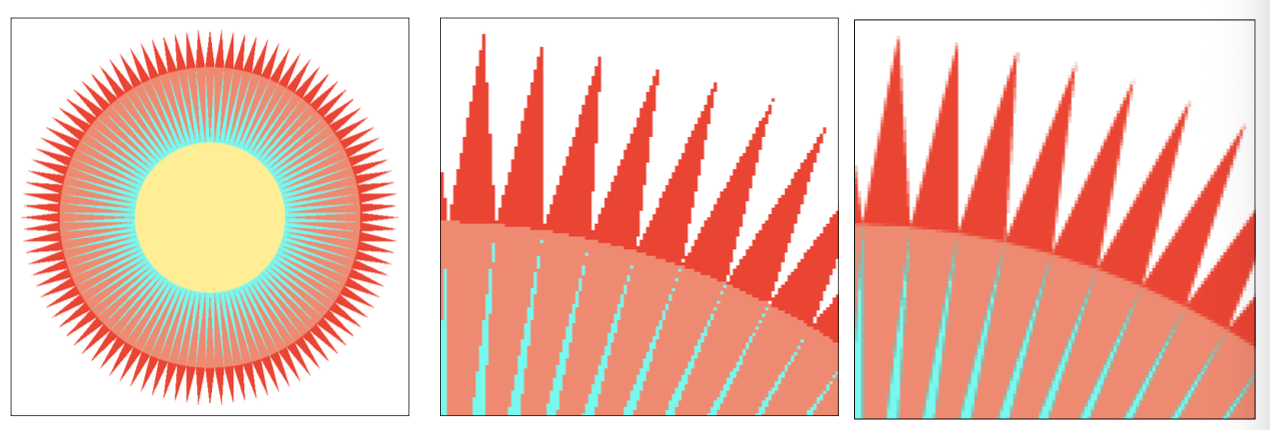 可以通过 Anti-anliasing 减少锯齿和摩尔纹的出现