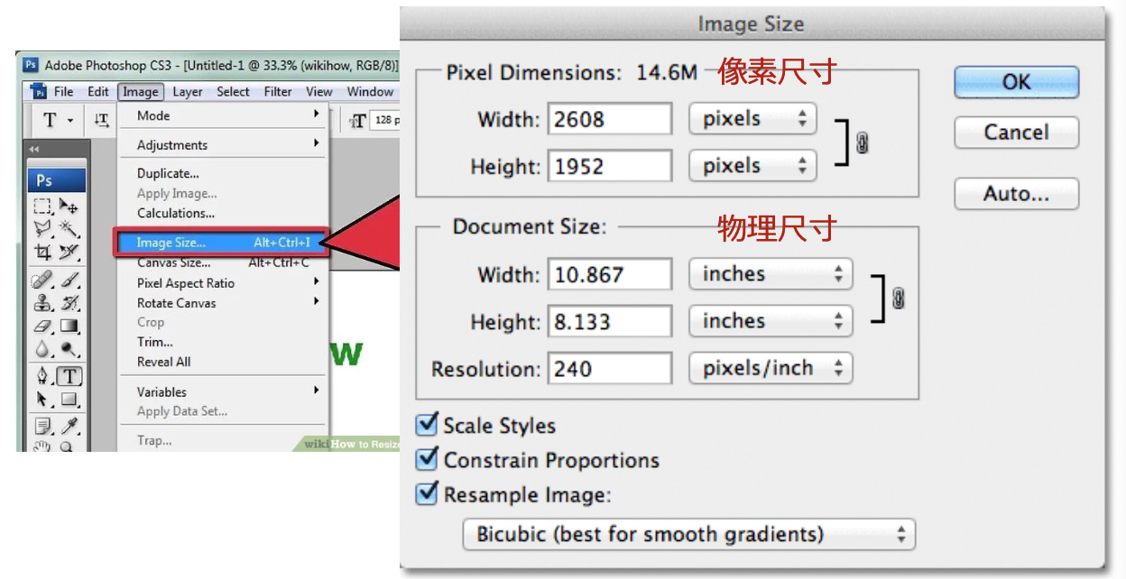 这二者之间的联系即为分辨率 (resolution),单位为像素每英寸 (pixels/inch, PPI)