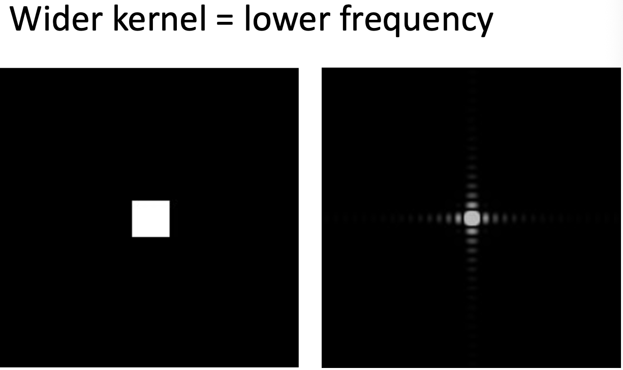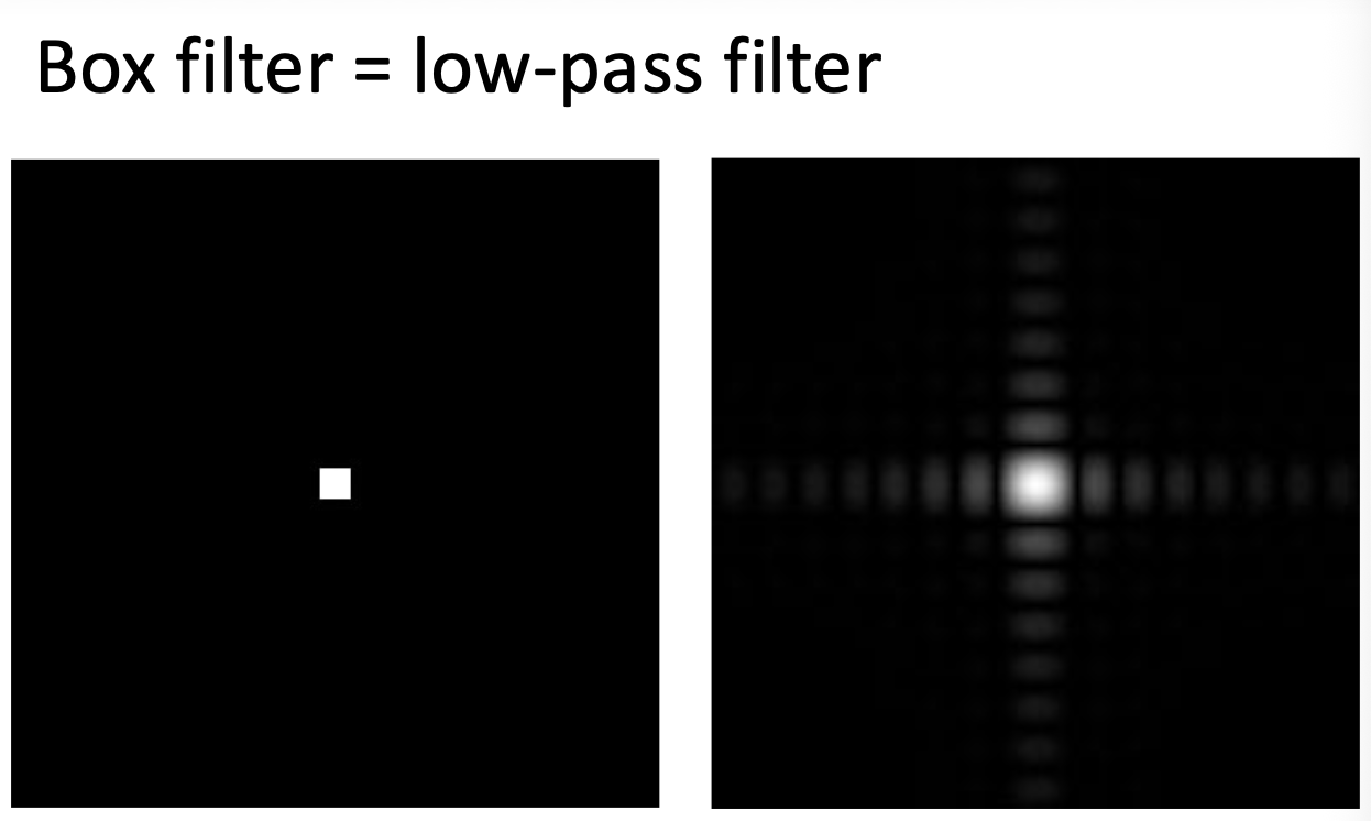 频域中二者的直接相乘可以直观的看出,中心的低频部分被保留,而边缘的高频部分被去除,从而实现了 box bluring,这也是卷积被称为滤波的原因
