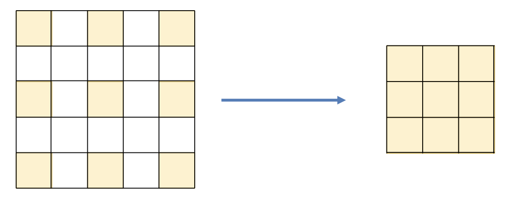 每隔一点采样一次,可以实现将图像的大小缩小为原来的一半