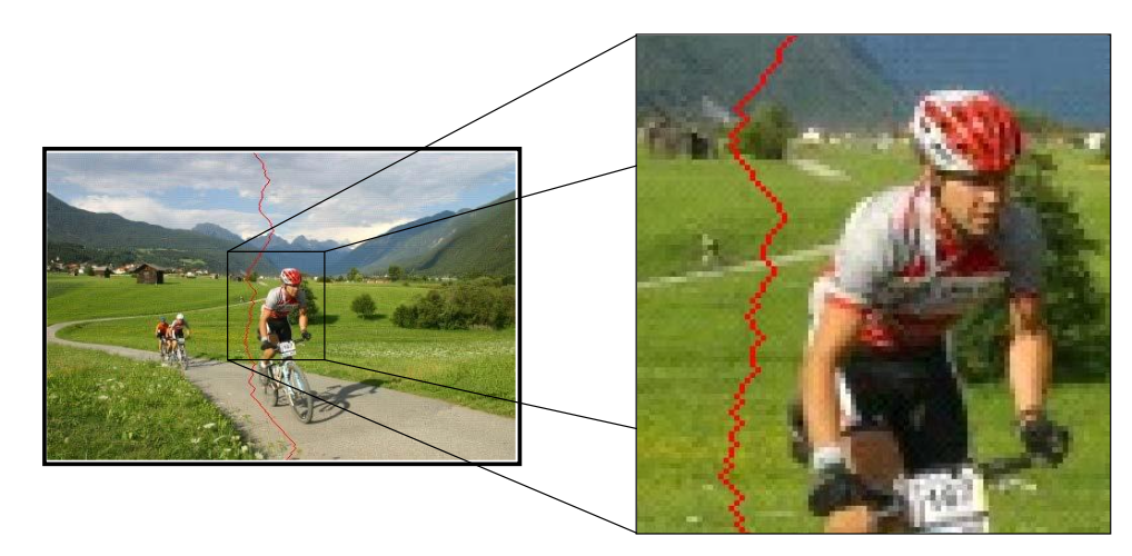 线条 (lines) 是包含极端高频分量的区域,其像素有跳跃式的急剧变化。如上图中间红框区域。